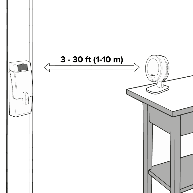 Plug the transmitter into an outlet and place it 3–30 ft (1–10 m) from the lock, with a clear line of sight.